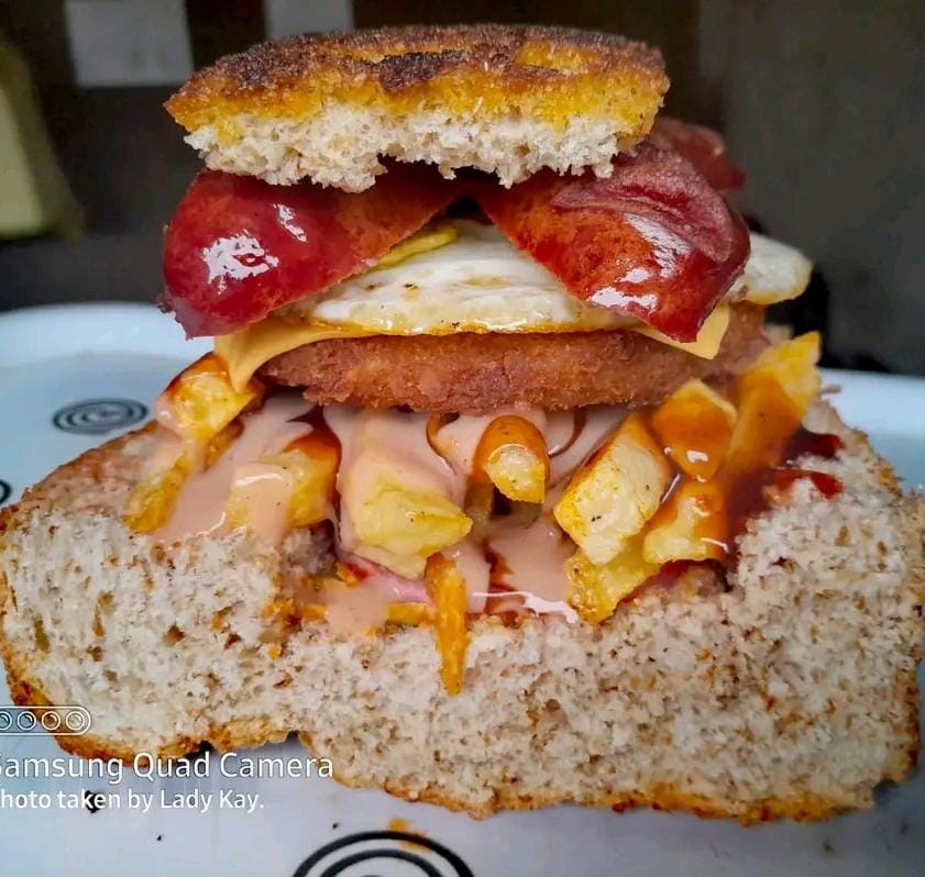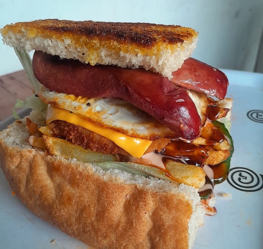 - Chips, atchaar, polony, egg, cheese, patty, burger, russian, vienna R50